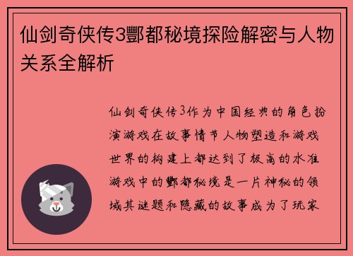 《造梦西游3》是一款非常受玩家喜爱的冒险类角色扮演游戏,拥有丰富的剧情和多样化的装备系统。在这款游戏中,紫金镔铁棍是一件极具象征意义和强大属性的装备,玩家们为了获取它付出了大量的努力。本文将从紫金镔铁棍的易爆点解析、获取途径、使用价值和提升方法等四个方面进行详细讲解,帮助玩家们更好地理解这一装备,并提高其获取的效率。文章将首先对紫金镔铁棍的易爆点进行详细的分析,帮助玩家避免掉入常见的误区;接着,我...